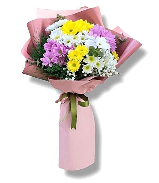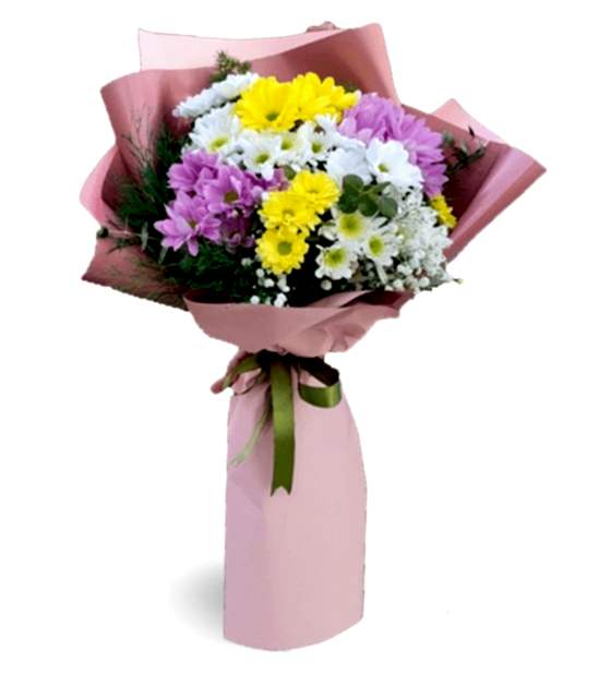 Sarı, beyaz ve pembe papatya çiçekleri ile hazırlanan karışık renkli papatya buketi