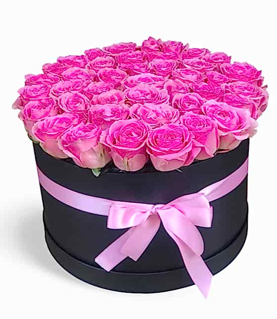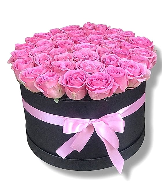 Yuvarlak kutuda 41 adet pembe gül aranjmanı