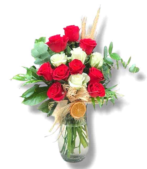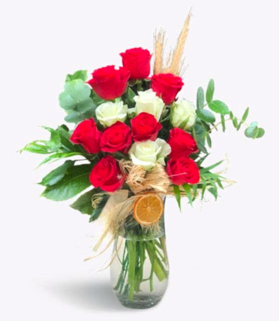 Silindir Vazoda Kırmızı ve Beyaz Güller